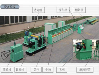 根據(jù)我國(guó)推廣應(yīng)用 400Mpa高強(qiáng)韌鋼(三級(jí)鋼),并將進(jìn)一步推廣高強(qiáng)韌鋼(三級(jí)鋼)的發(fā)展趨勢(shì)下,本公司致力與優(yōu)化新工藝,淘汰落后的帶肋鋼筋傳統(tǒng)舊工藝,自主研發(fā)制造的高強(qiáng)韌兩肋鋼筋生產(chǎn)線,軋制工藝先進(jìn)、屬國(guó)內(nèi)首創(chuàng)、設(shè)備設(shè)計(jì)合理、制造精良、速度可調(diào)、運(yùn)行穩(wěn)定、操作方便,使整條兩肋鋼筋生產(chǎn)線基本實(shí)現(xiàn)了自動(dòng)、連續(xù)、高速的作業(yè)水平。不僅提高了鋼筋的伸長(zhǎng)率、抗拉強(qiáng)度、屈服強(qiáng)度等機(jī)械性能,同時(shí)使產(chǎn)品的外觀和防銹是能力更有突破性進(jìn)展。輕松達(dá)鋼筋軋制產(chǎn)業(yè)規(guī)?;S肣235高線軋制的鋼筋完全達(dá)到和超過(guò)三級(jí)鋼鋼筋的各項(xiàng)力學(xué)性能指標(biāo)。兩種新工藝如下: 一、高頻加熱低溫軋制工藝流程為:除銹牽引、低溫軋制、調(diào)直、剪斷、打捆。 二、冷軋高頻加熱低溫調(diào)質(zhì)工藝流程為:除銹、冷軋、調(diào)直、回火處理、剪斷、打捆。 此工藝軋制的產(chǎn)品防銹蝕時(shí)間長(zhǎng)、伸長(zhǎng)率大、外觀著色好。